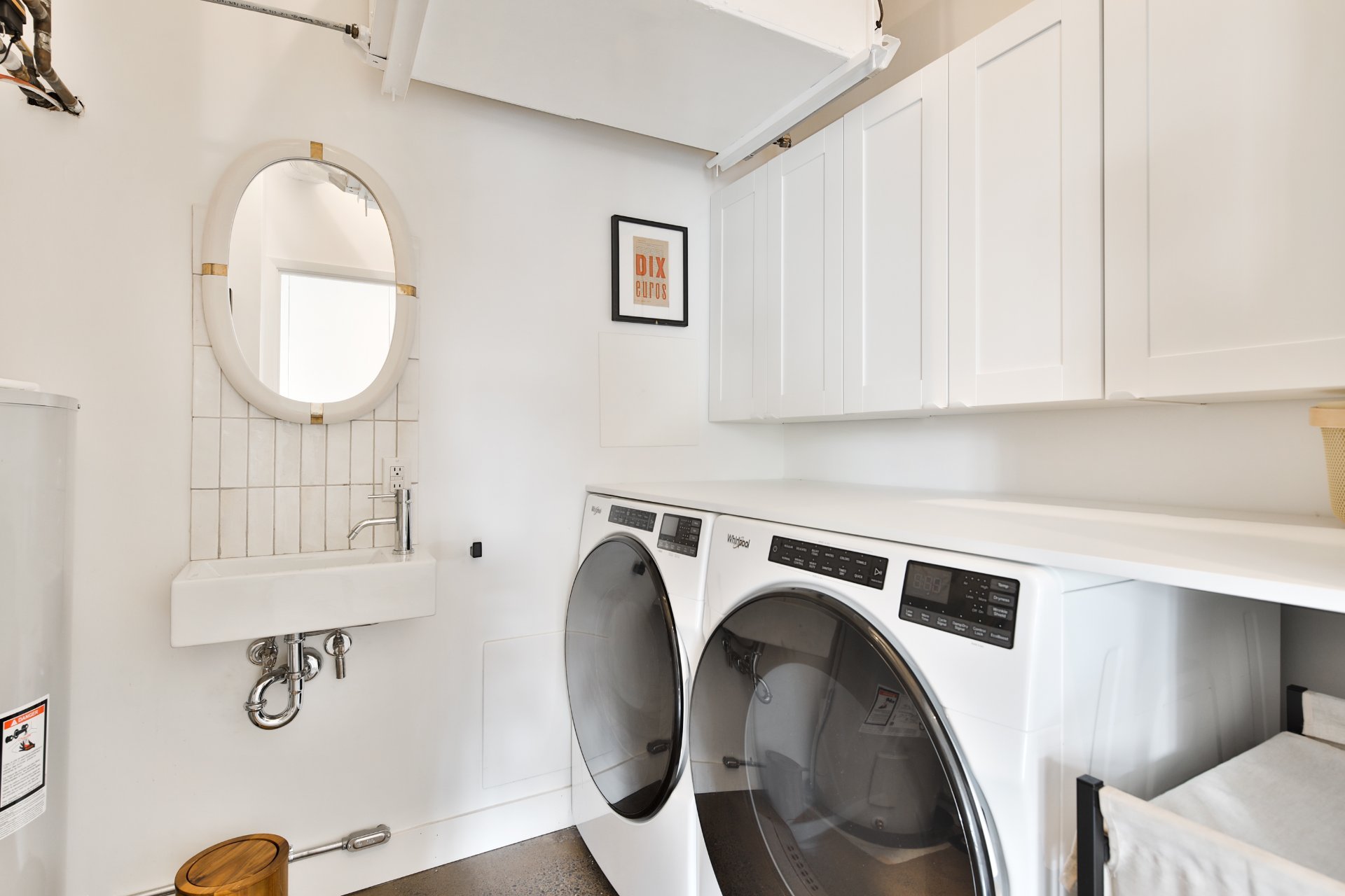 Lave-vaisselle, four encastré, plaque de cuisson, tous les stores éléctriques, frigo, laveuse/sécheuse
